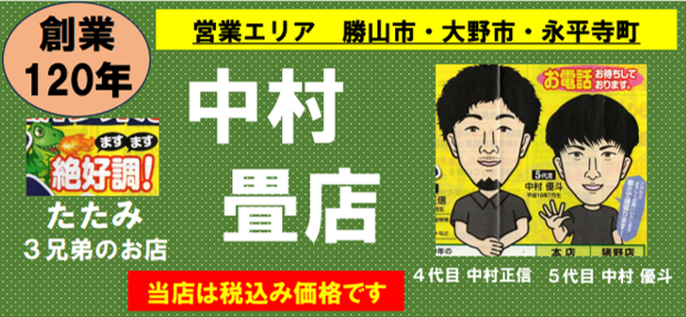 120年以上も畳店を続けられているのは地元の皆さまに支えていただいているお陰と感謝申し上げます。
